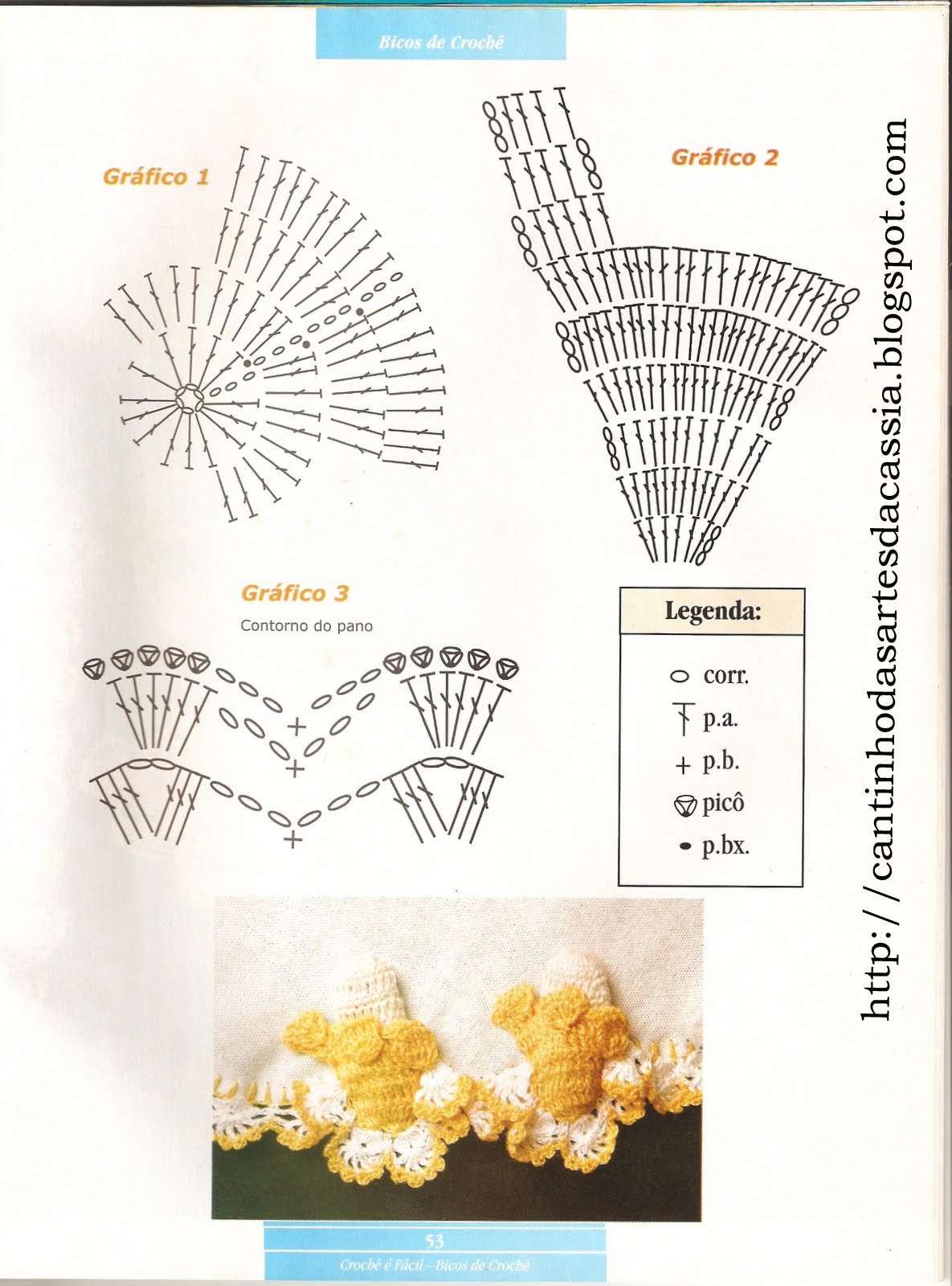 Essa revista trás uns bicos diferentes e ainda ensina fazer alguns pontos, mistura crochê com pintura bem legal.