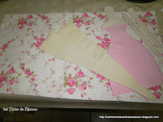 O tecido estampado do fundo será o pijama da Tilda rosa...