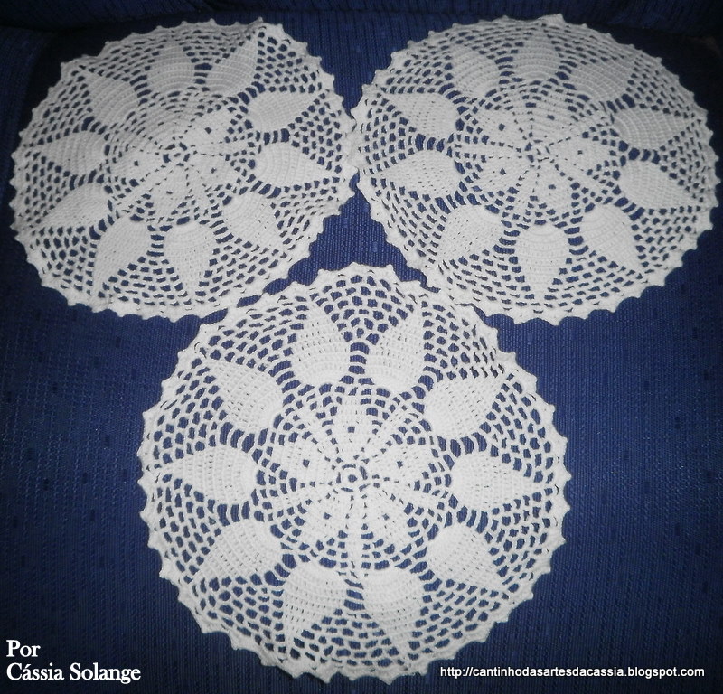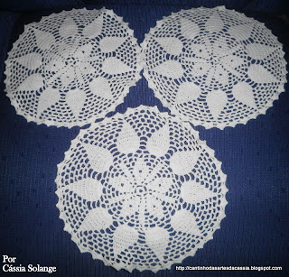 Eu lembrei agora de uma senhora que conheci quando criança e que fazia um crochê maravilhos. Quando casei ela me deu um jogo muito semelhante a este, que tenho até hoje, 16 anos passados. Saudades...
