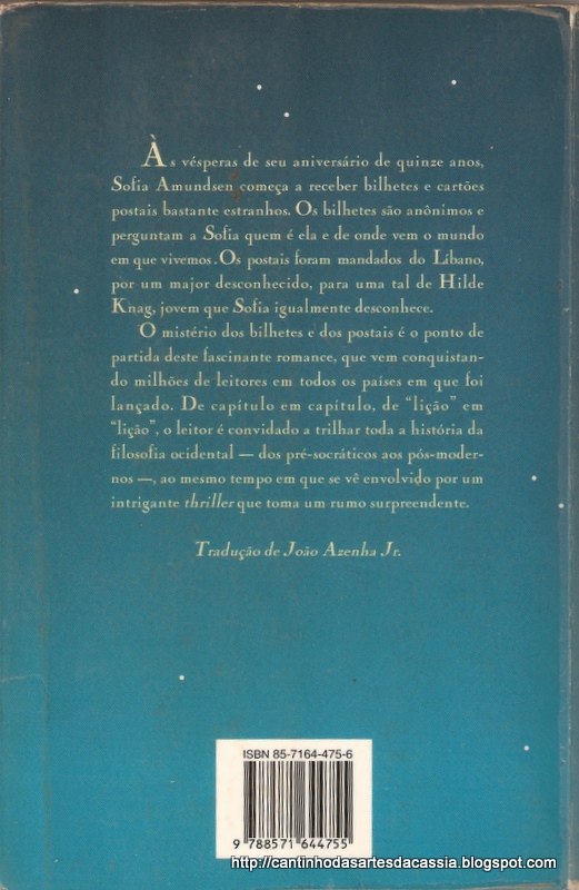 O Livro: O mundo de Sofia é mesmo um livro diferente e surpreendente. Veja também o vídeo, ele é dividido em 8 capitulos. Vale a pena conferir, são 200 minutos que vc nem vê passar...